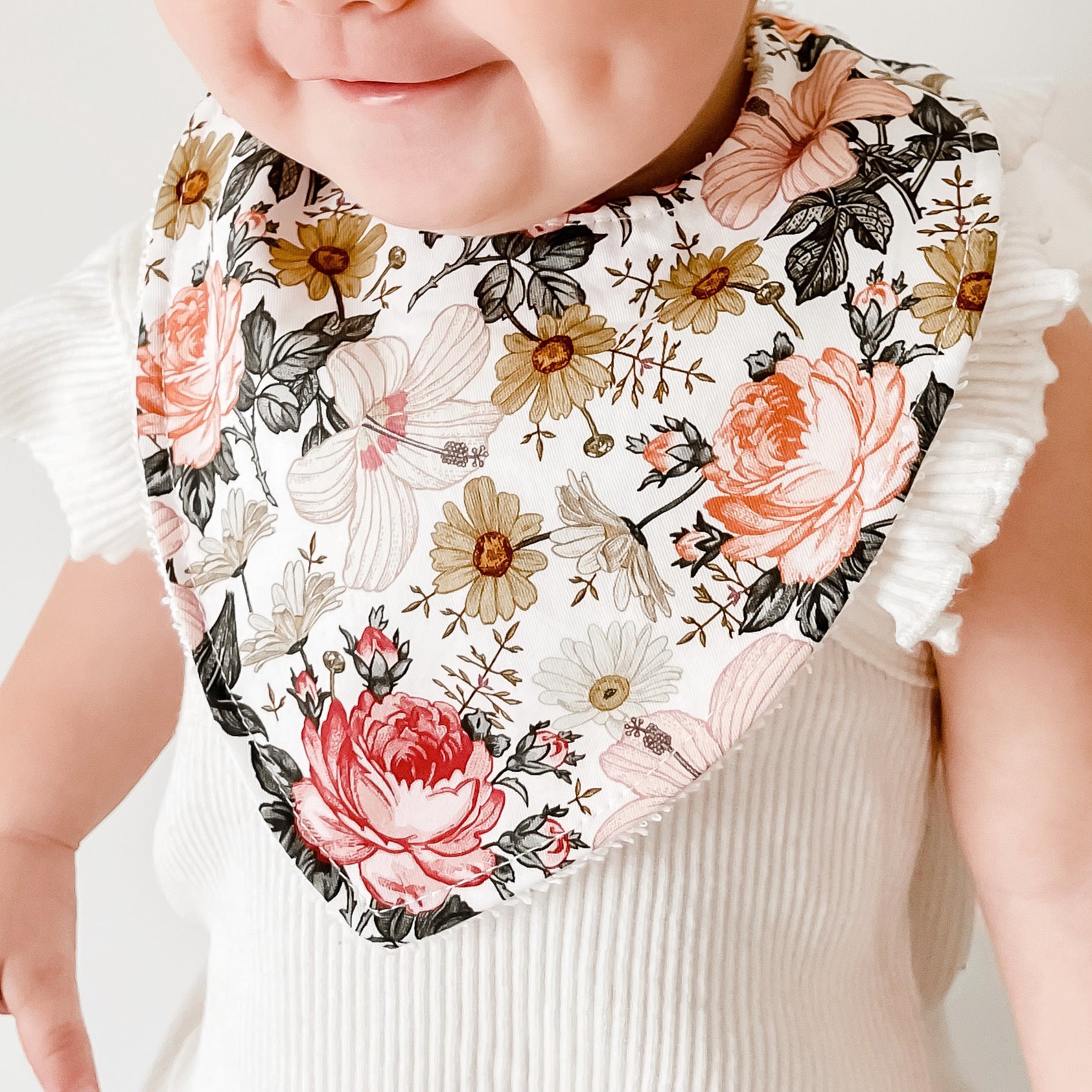 Our Bibs are finished with double snap clips for adjustable sizing options and easy fastening and removal. PLEASE NOTE: Each Bib is individually made from small batch fabric cuts, and there may be variations in print placement on the final product you receive compared to the product photo displayed.