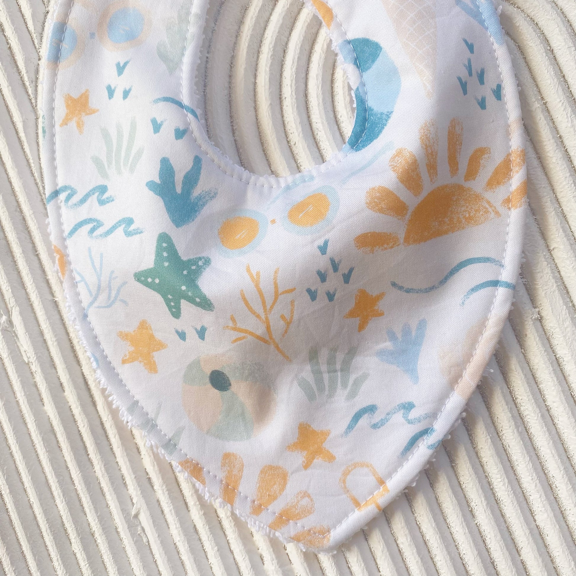 Here at Polly & Pop, our Bibs are made with love from the first cut of fabric to the final seams that are stitched. Designed with both functionality and practicality in mind, each Bib features a vibrant printed cotton front, and a DOUBLE LAYER of terry towelling material for maximum absorption to help soak up all of those little dribbles and spills.